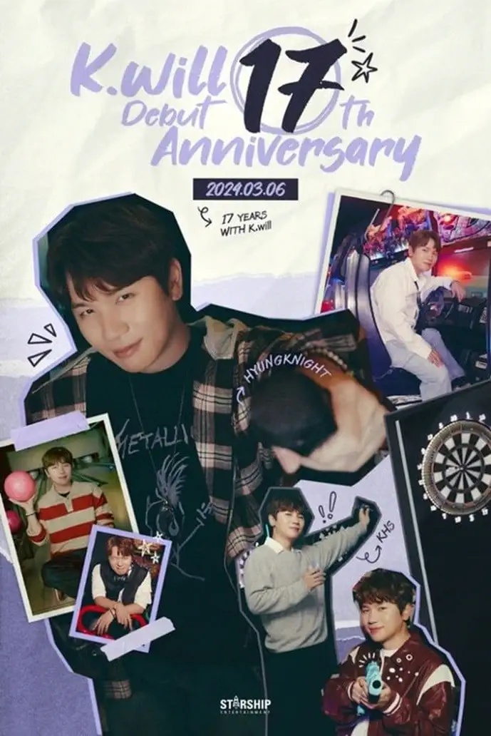 K.Will ఈరోజు తన 17వ అరంగేట్ర వార్షికోత్సవాన్ని జరుపుకుంటున్నాడు, తన తిరుగులేని మద్దతుదారులకు కృతజ్ఞతలు తెలుపుతూ.